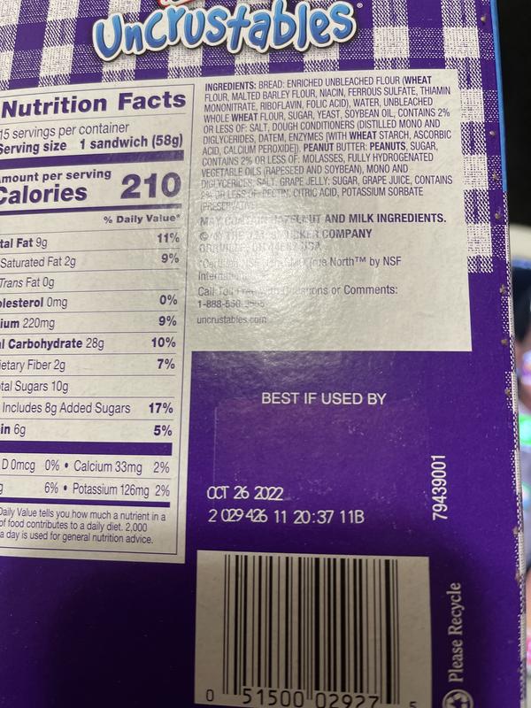 Uncrustable nutrition label