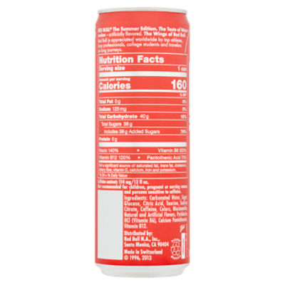 Red bull nutrition facts label